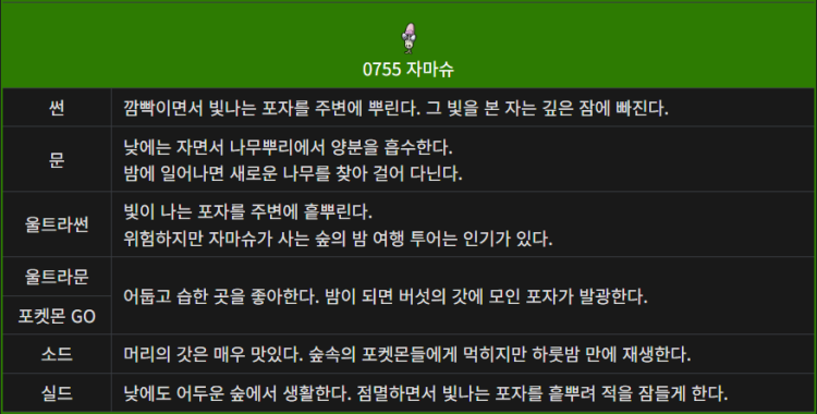 자마슈의 도감 설명입니다.